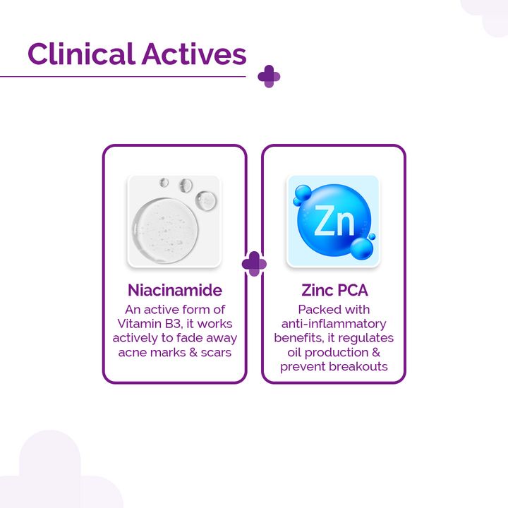 Now supercharged with Deep Penetration Formula (DPF) for enhanced absorption and faster results! Fades acne marks, controls oil, minimizes pores, and improves skin texture. Powered by 10% Niacinamide & 2% Zinc PCA. Suitable for all skin types.