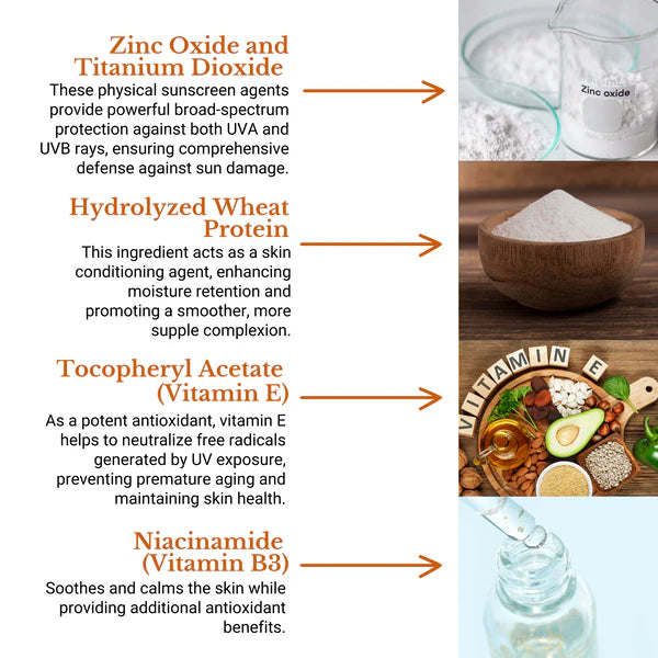 A water-light, no white cast sunscreen that protects against UVA/UVB rays and blue light. Enriched with multi-vitamins, Hydrolyzed Wheat Protein, and Niacinamide for hydration, radiance, and age-defense. Suitable for all skin types.